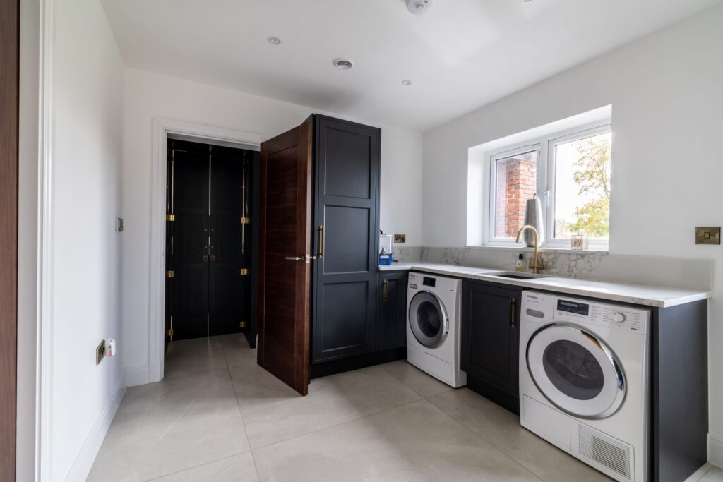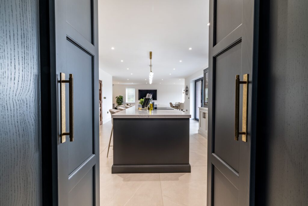 A full house project including Kitchen with passageway doors into the Utility Room. A bold spacious home office on the ground floor with his & her’s dressing room on the first floor.