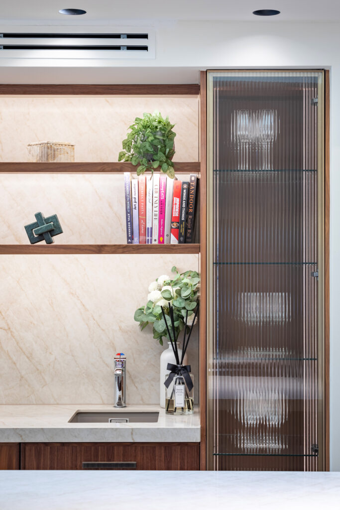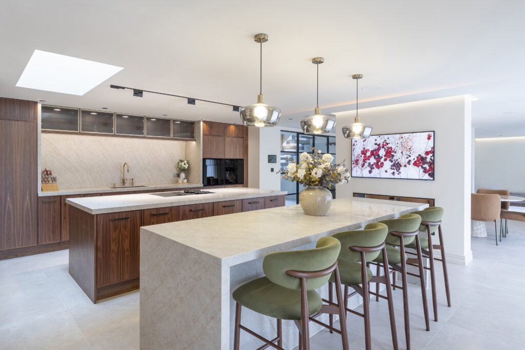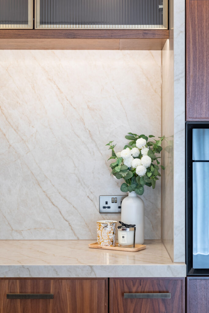 Walnut Micro-Shaker door with Taj Mahal worksurfaces.